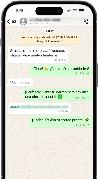 Con nuestros chatbots especializados para WhatsApp Business, tus clientes recibirán respuestas exactas al instante – sin esperas, sin errores de coordinación, sin contratar personal adicional